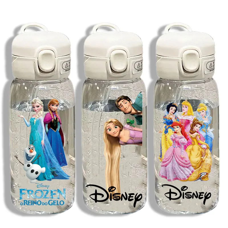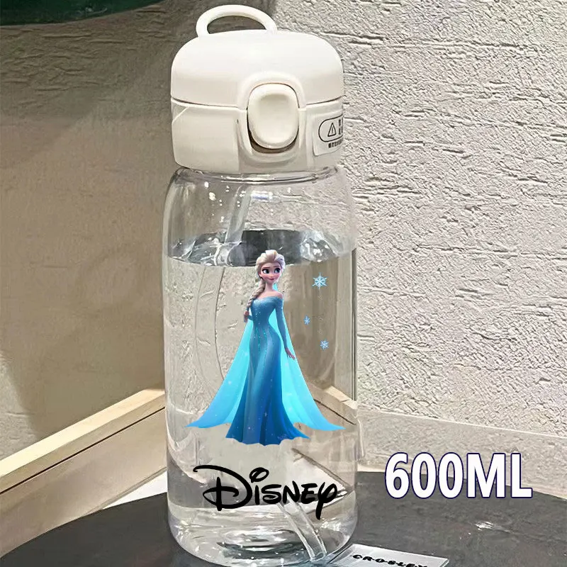كوب ماء بلاستيكي محمول بسعة 600 مل، مزود بماصة، مزين بشخصية إلسا من فيلم ديزني فروزن، شفاف، رائع، مناسب للفتيات، للاستخدام الخارجي، سعة كبيرة، زجاجة ماء رياضية