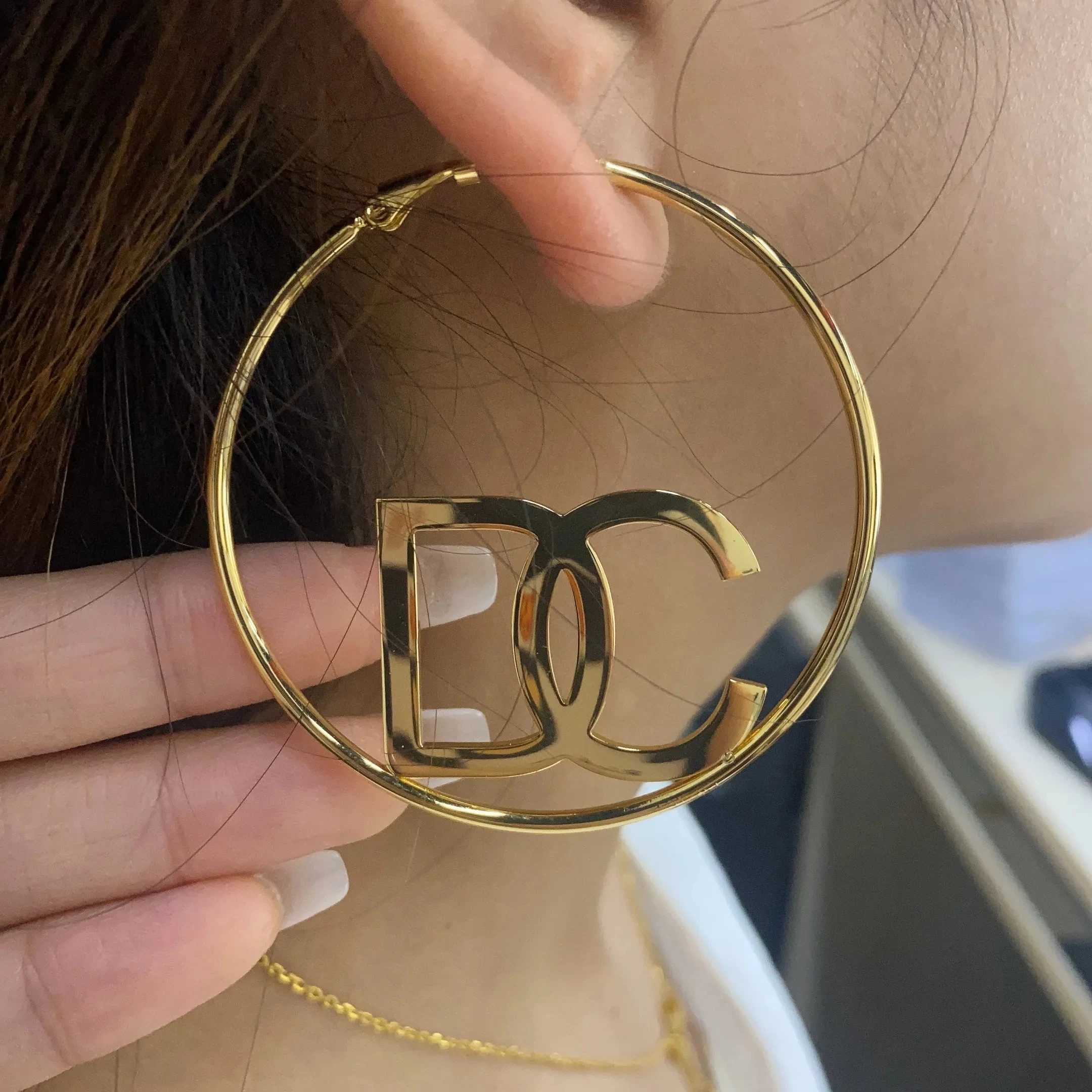 أقراط حروف مخصصة، أقراط حلقية تحمل اسمًا شخصيًا، أقراط مصنوعة يدويًا من الفولاذ المقاوم للصدأ، هدية للنساء