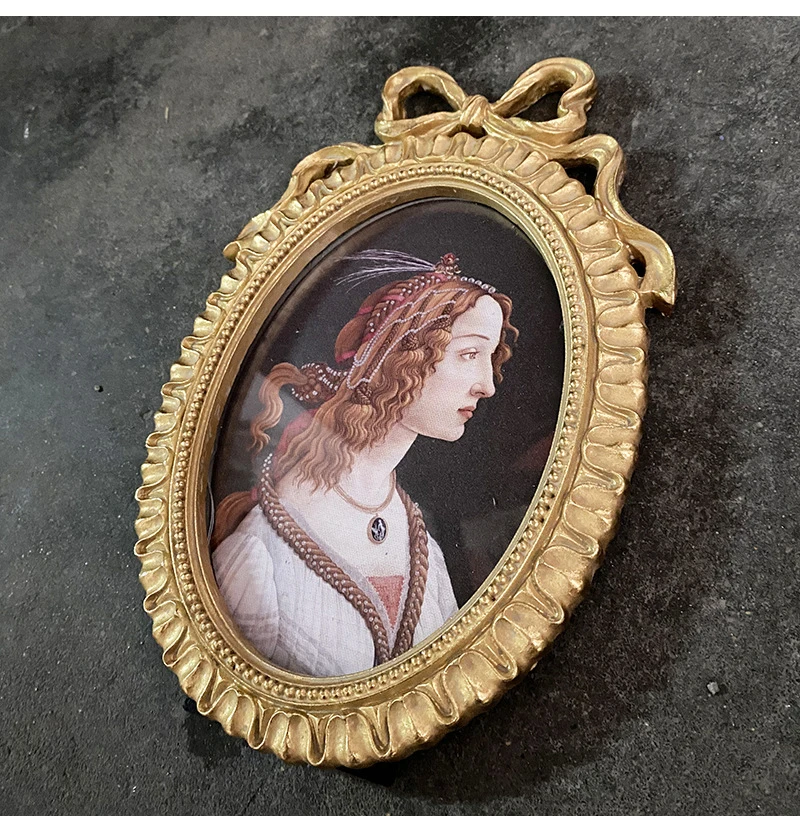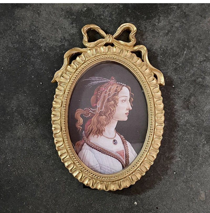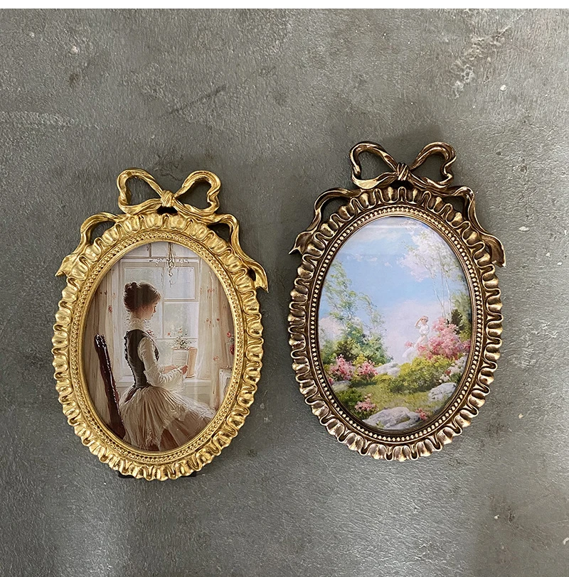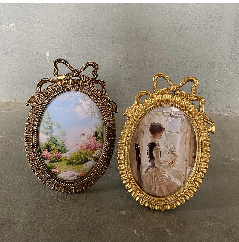 إطار صور بيضاوي عتيق، يُعلق على الحائط، مزين بفيونكة ذهبية بارزة، مصنوع من الراتنج، حامل إطار صور، ديكور طاولة، ديكور منزلي، ورق عشوائي