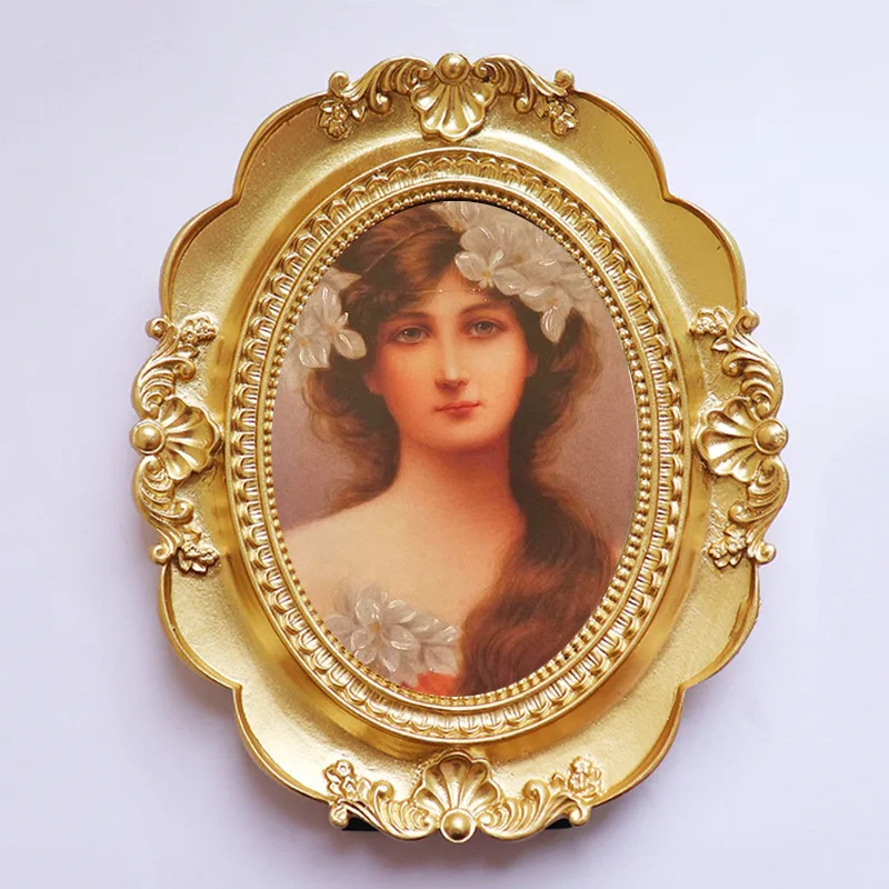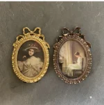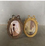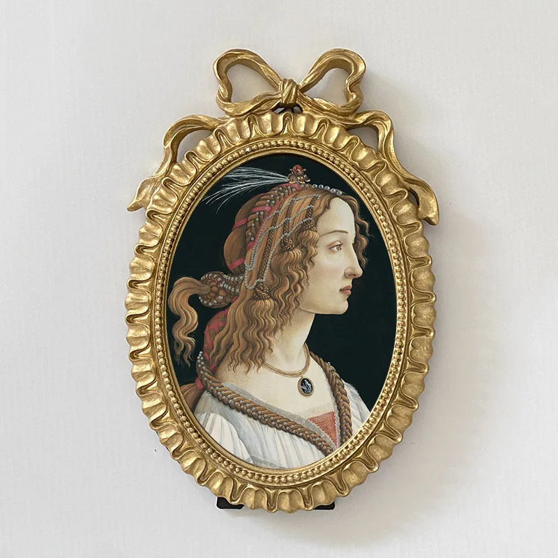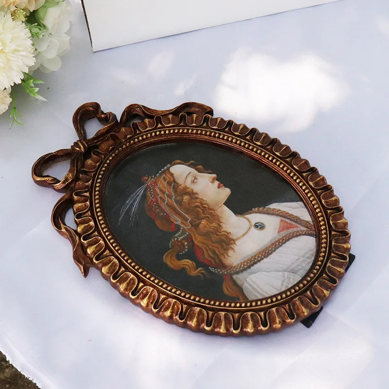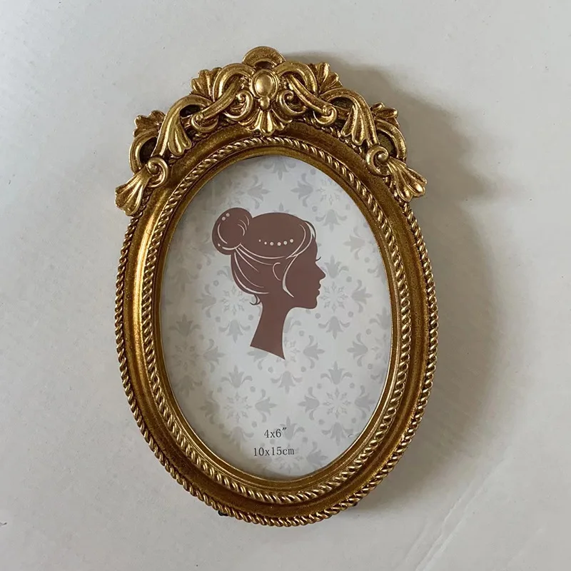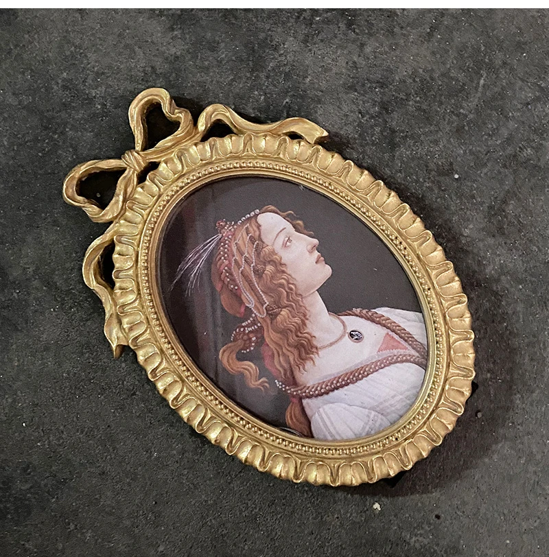 إطار صور بيضاوي عتيق، يُعلق على الحائط، مزين بفيونكة ذهبية بارزة، مصنوع من الراتنج، حامل إطار صور، ديكور طاولة، ديكور منزلي، ورق عشوائي