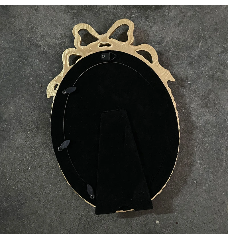 إطار صور بيضاوي عتيق معلق على الحائط، مزين بفيونكة ذهبية بارزة، مصنوع من الراتنج، حامل إطار صور، ديكور طاولة، ديكور منزلي، ورق عشوائي