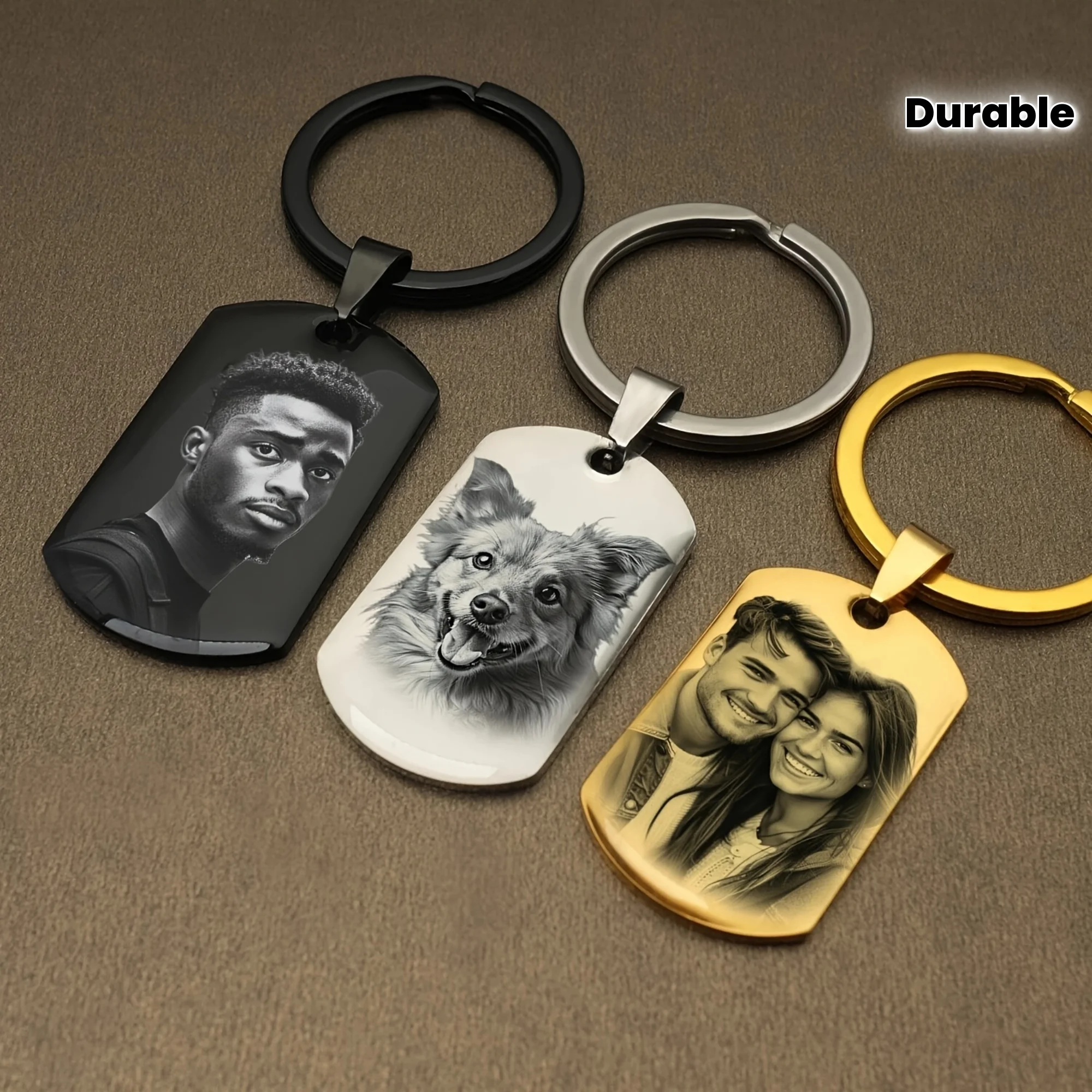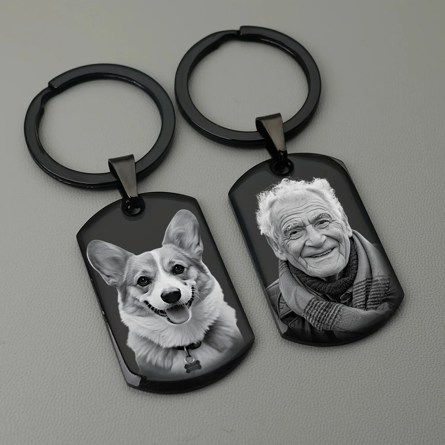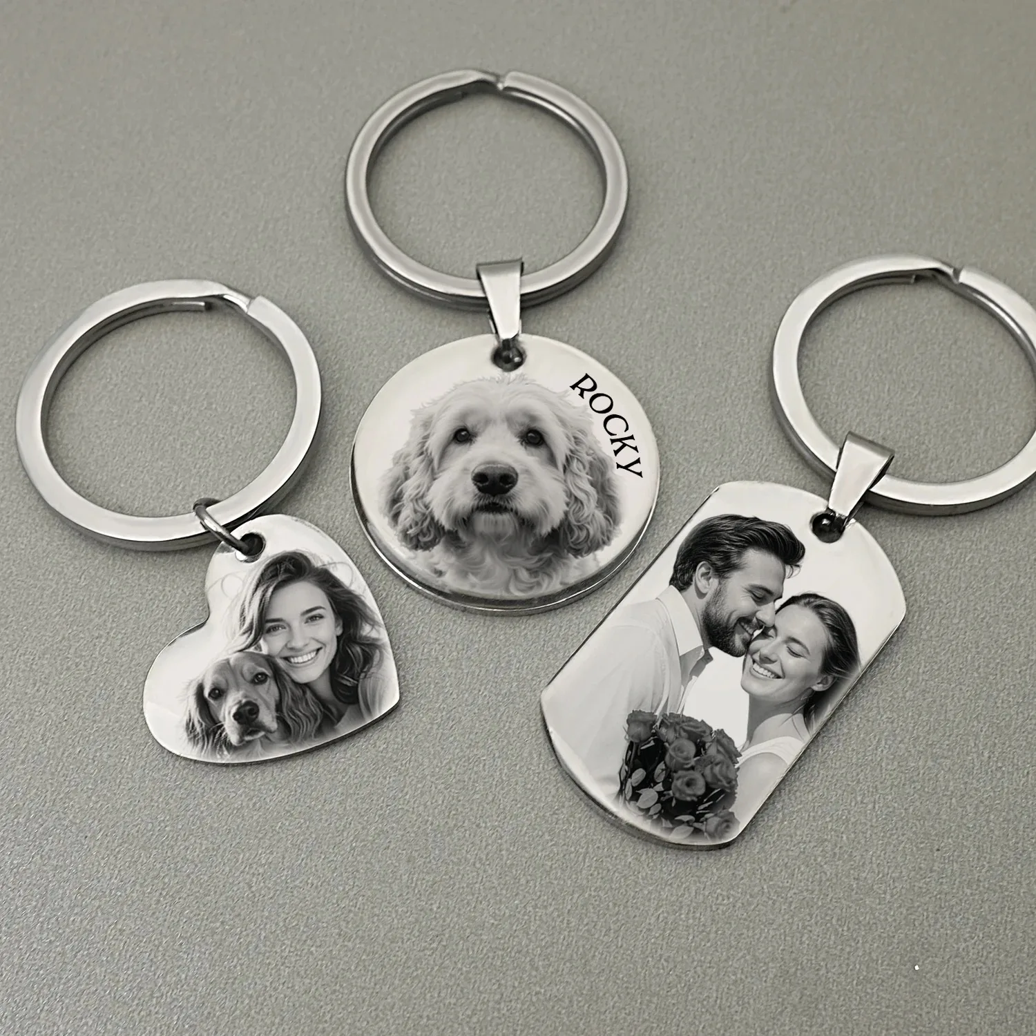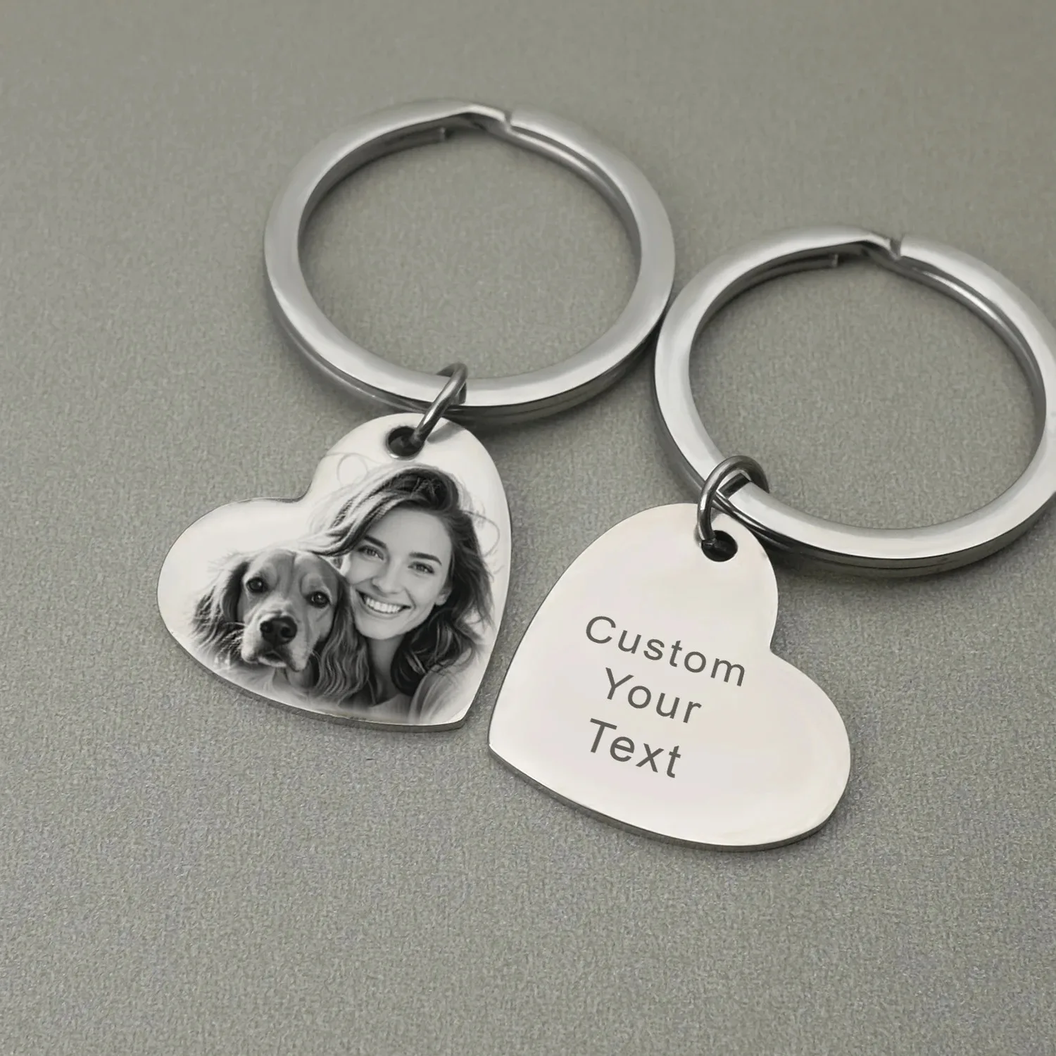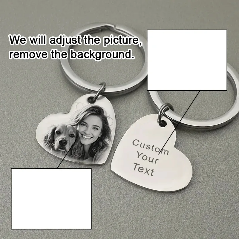 سلسلة مفاتيح بصورة محفورة بالليزر، هدية شخصية مميزة، سلسلة معدنية متينة للأزواج ومحبي الحيوانات الأليفة، هدية مثالية للذكرى السنوية وعيد الحب