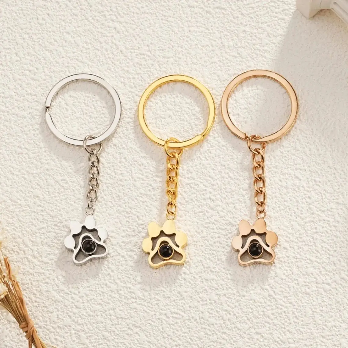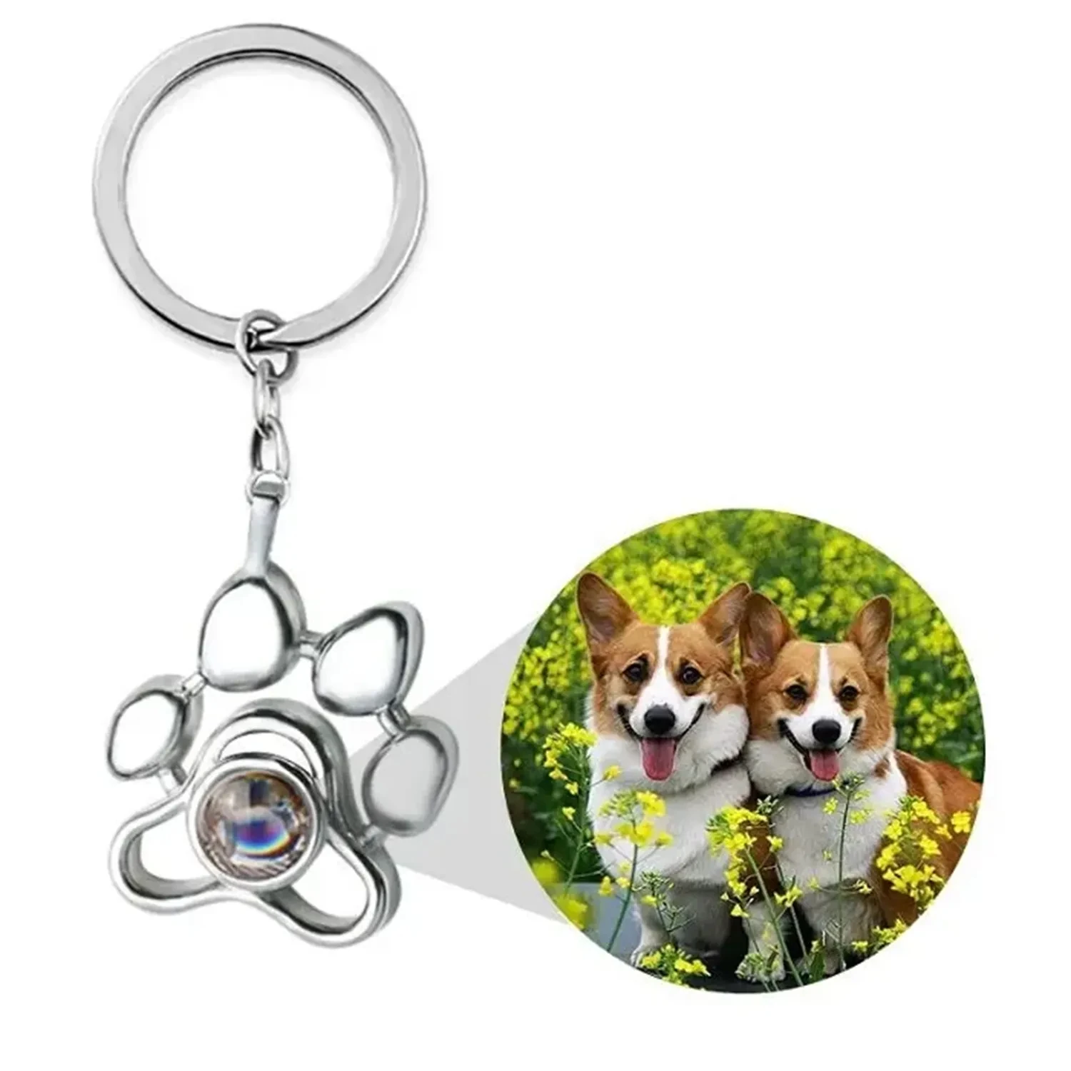 سلسلة مفاتيح بصورة مُسقطة، متوفرة باللون الذهبي والفضي والذهبي الوردي، مع إمكانية تخصيص صورة حيوانك الأليف داخلها، مصنوعة من الفضة الإسترليني عيار 925.