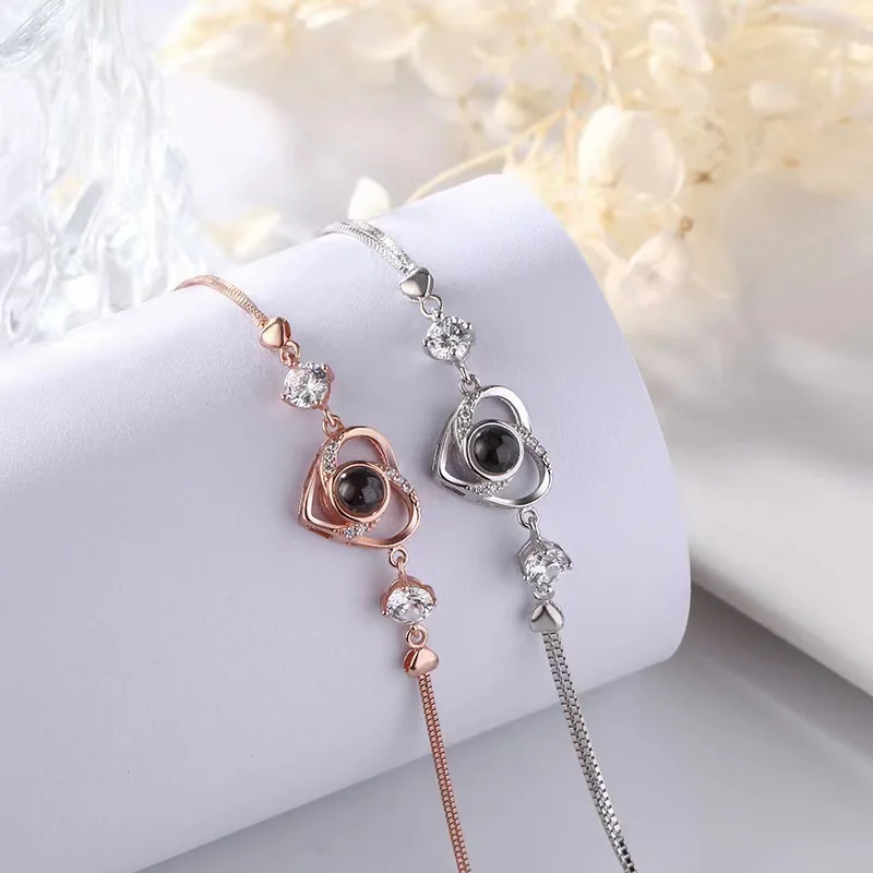 سوار عرض صور مخصص، قلادة على شكل قلب مرصعة بالزركون، مصنوع من الفولاذ المقاوم للصدأ، سوار صور داخلي، مجوهرات نسائية، سوار نسائي بتصميم شخصي، قلادة على شكل قلب مرصعة بالزركون، سوار من الفولاذ المقاوم للصدأ، سوار صور داخلي، مجوهرات نسائية