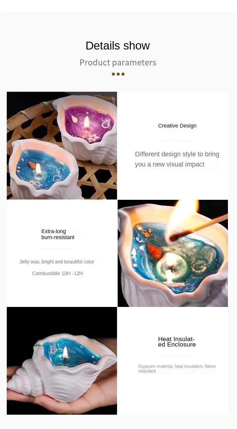 شمعة صدفة البحر ليست مجرد زينة، بل هي رفيقة في العزلة وحامية في أوقات الشدة. إنها تجسد جوهر البحار الهادئة والنسائم اللطيفة، مما يتيح لك الاستمتاع بالرقصة المتغيرة باستمرار للأمواج وانعكاس ضوء النجوم المتلألئ على الماء. src=”https://ae01.alicdn.com/kf/S6636a27a325e406b80ba1bae3f7e09e9H.jpg?width=800&height=800&hash=1600″ style=”width:900px”>