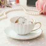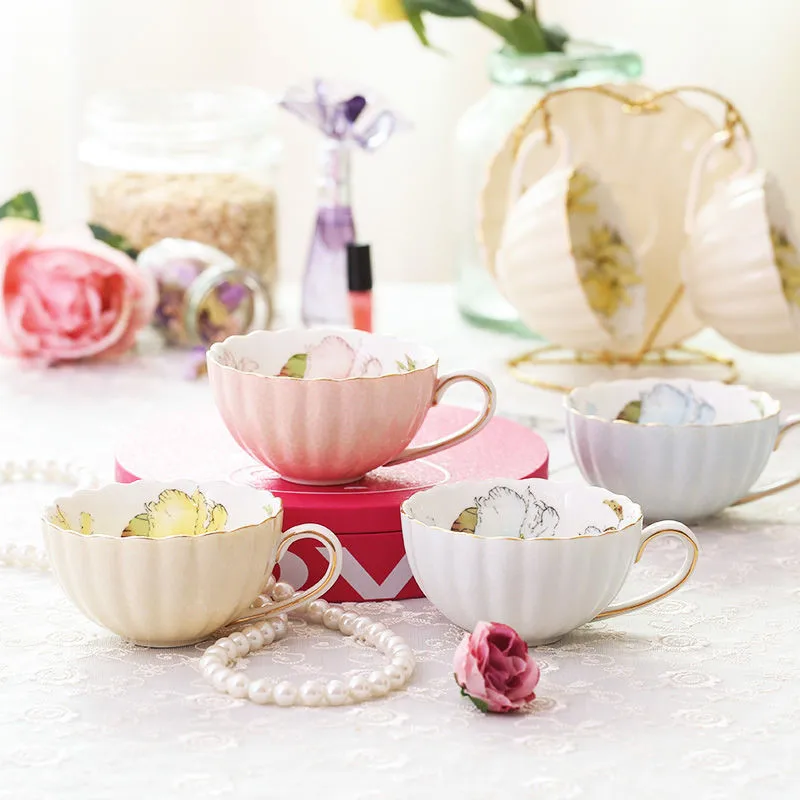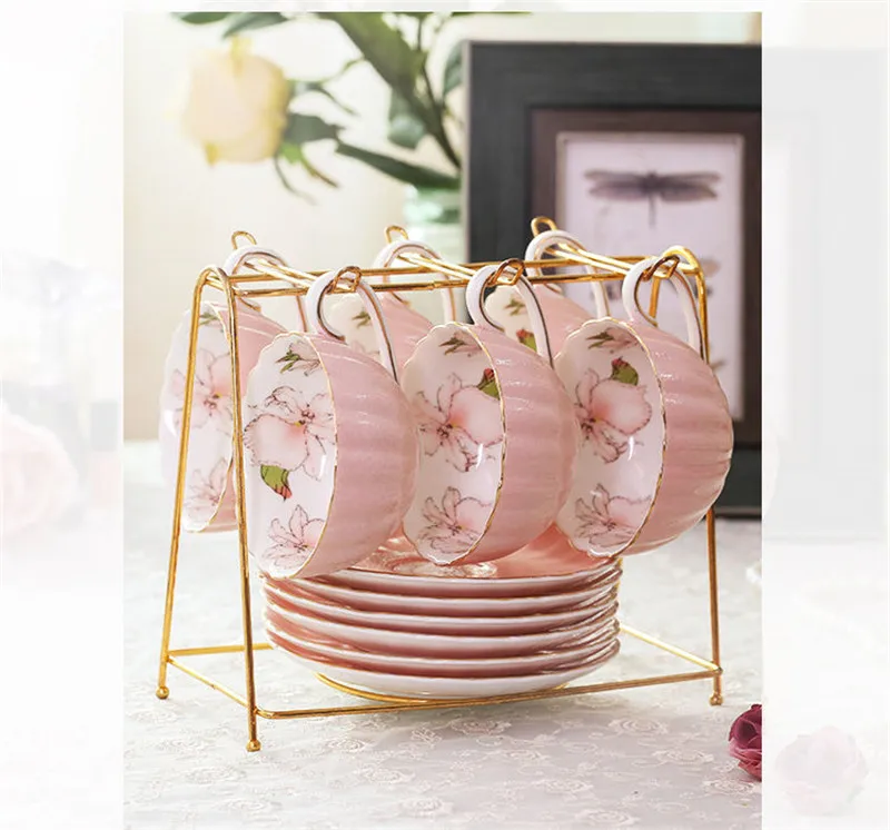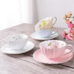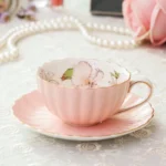 طقم فنجان وصحن شاي من البورسلين الوردي، سعة 200 مل، مناسب لشاي ما بعد الظهيرة الإنجليزي، طقم واحد، كوب حليب للفطور، كوب قهوة، كوب سيراميك