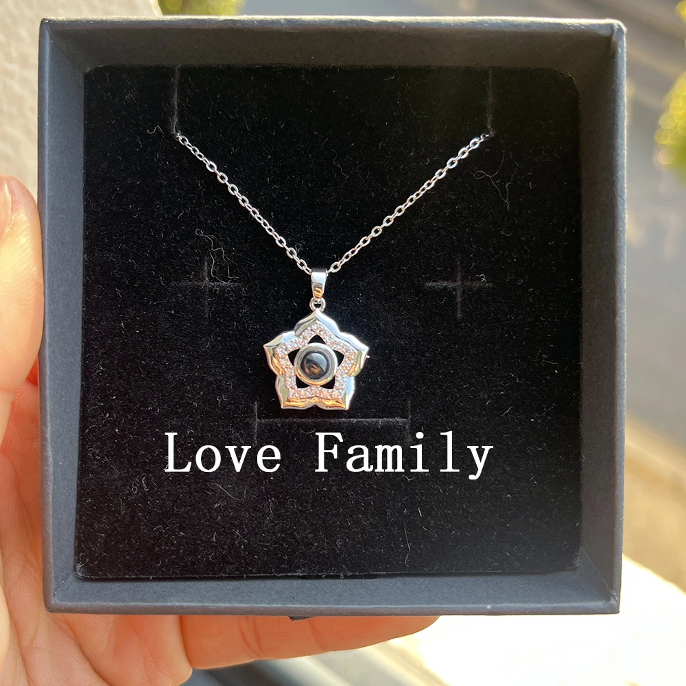 قلادة عرض صور مخصصة، سلسلة من الفولاذ المقاوم للصدأ، قلادة على شكل قلب وزهرة ونجمة، يمكنك صنع صورة بنفسك بداخلها، قلادة للأزواج والعائلات