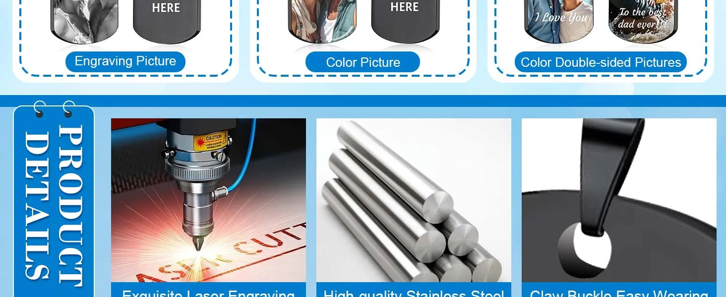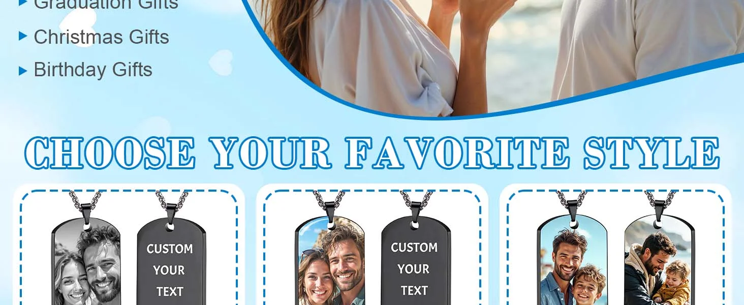 قلادة Amaxer مخصصة بنقش صورة ونص على شكل لوحة تعريف للكلاب، هدية مثالية للحبيب أو الزوج أو الأب في عيد ميلاده أو عيد الحب