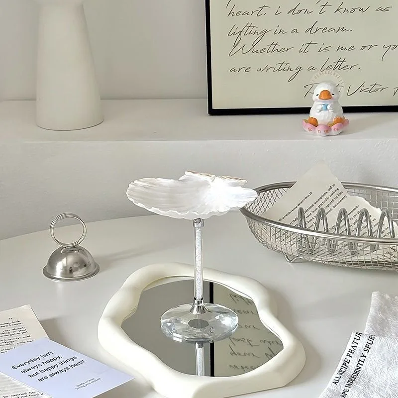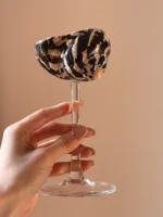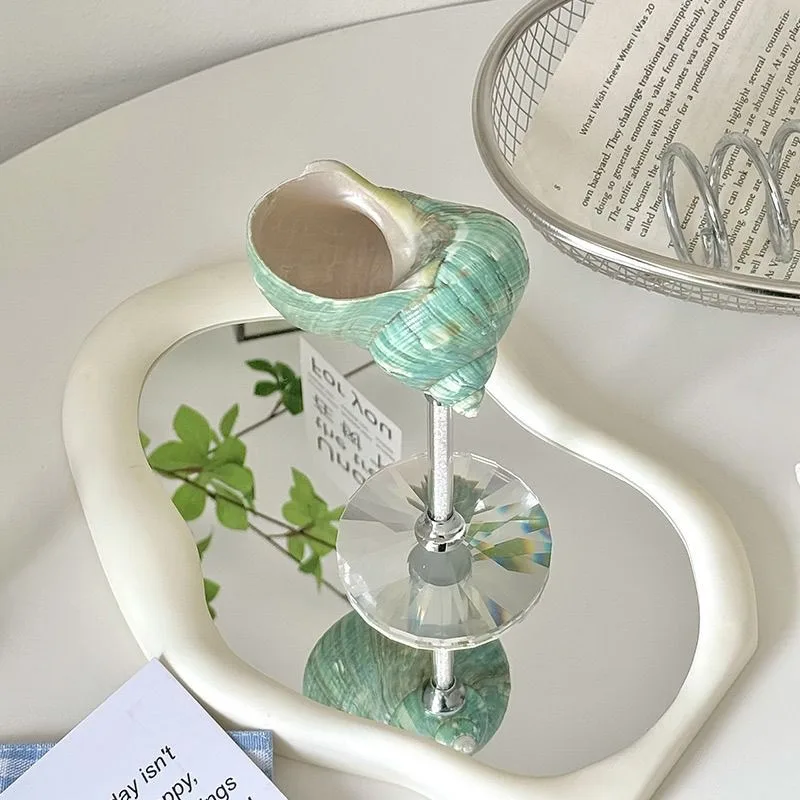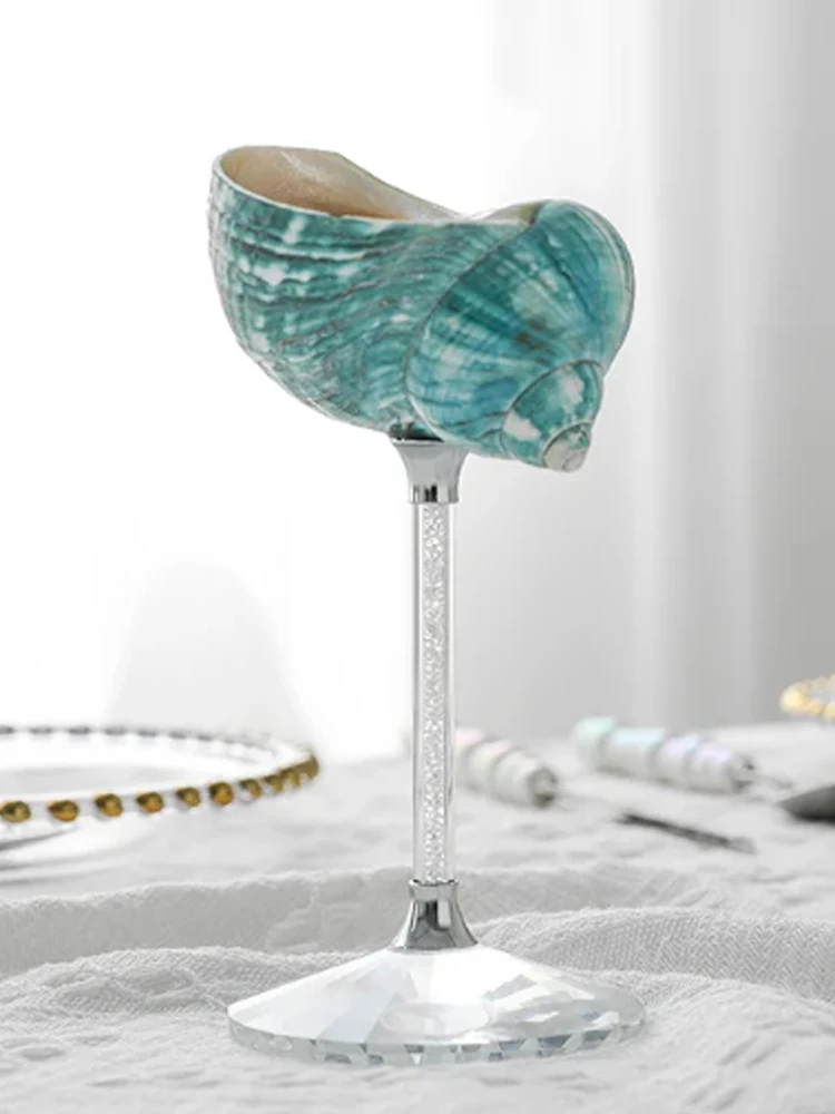 كأس زجاجي مصنوع من صدفة طبيعية – دعامة تصوير فنية، ديكور منزلي/مقهى، يضفي أجواءً فريدة لعرضه على سطح المكتب
