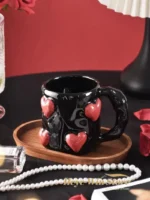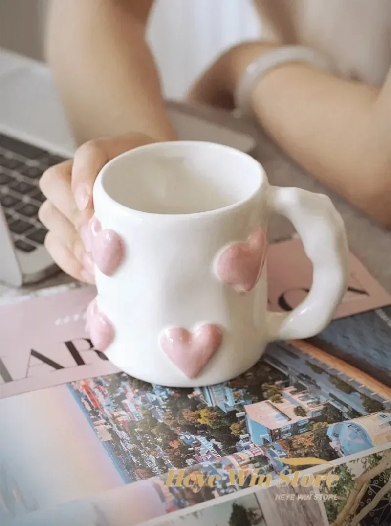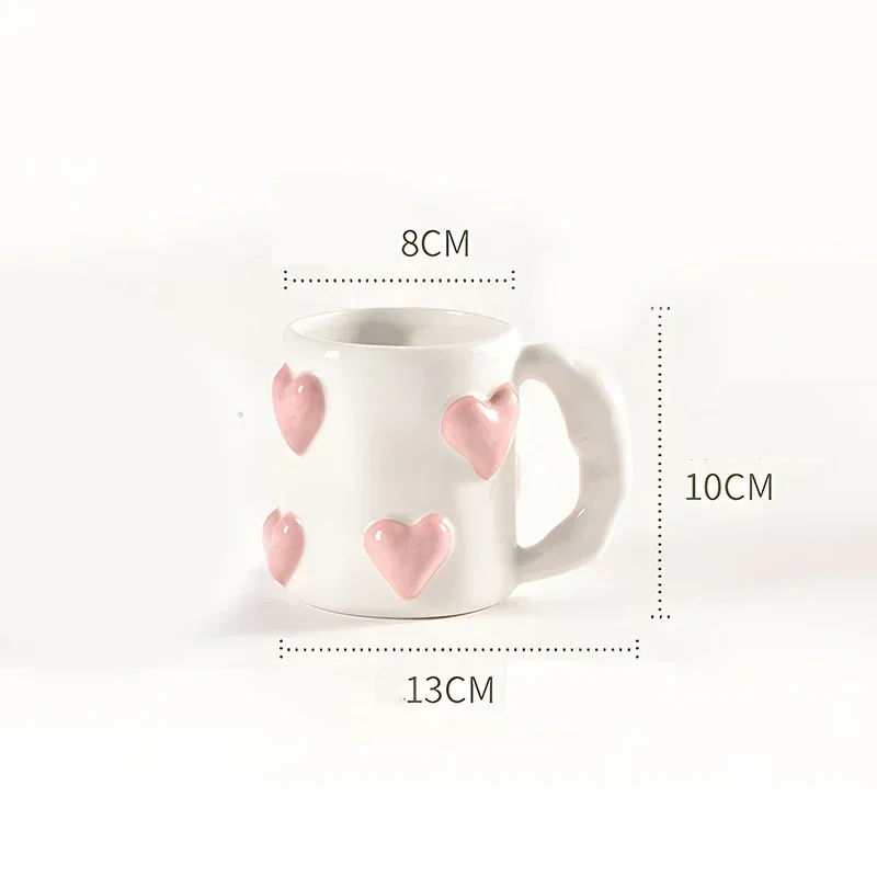 كوب سيراميك عتيق بتصميم ثلاثي الأبعاد على شكل قلب، لطيف وذو سعة كبيرة، كوب قهوة منقوش ثلاثي الأبعاد، طقم أدوات شرب للمطبخ