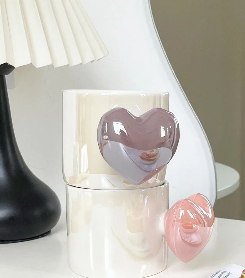 كوب قهوة سيراميك على شكل قلب مفتوح بتصميم أوروبي، هدية مثالية للأزواج، كوب ماء بتصميم قلب ثلاثي الأبعاد، كوب مكتبي