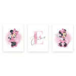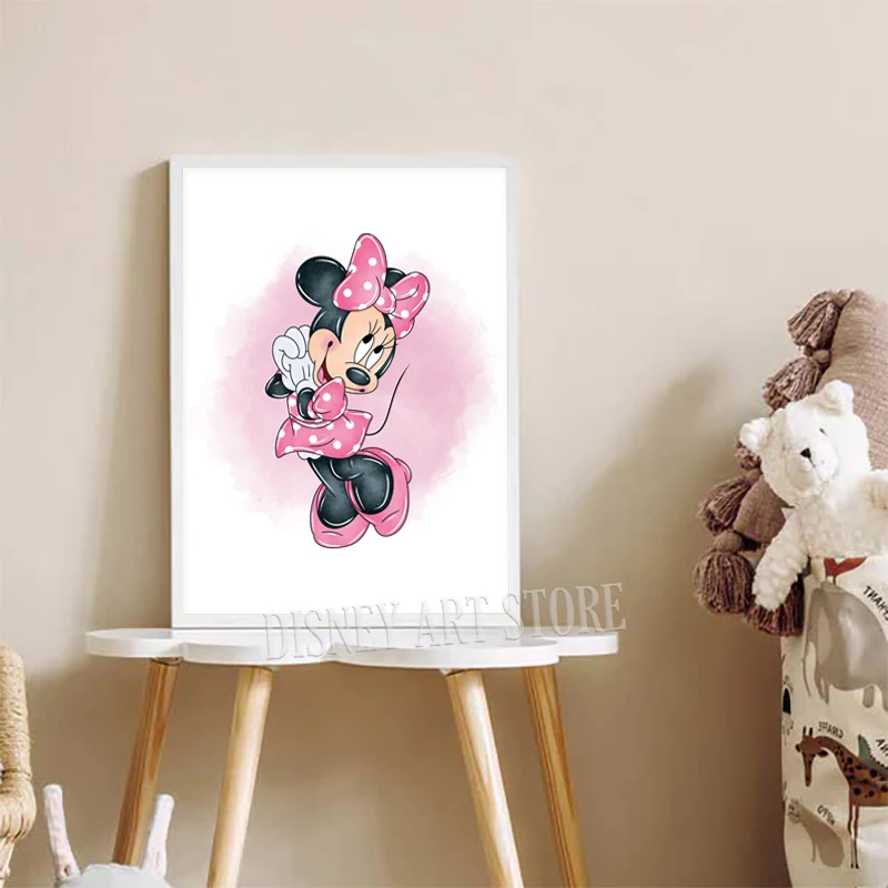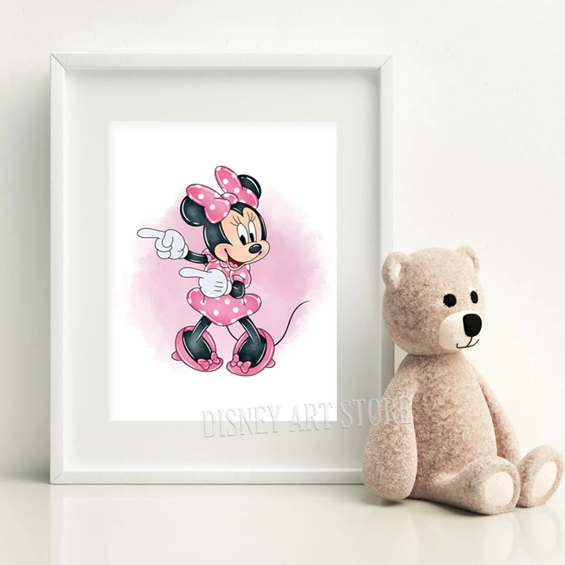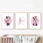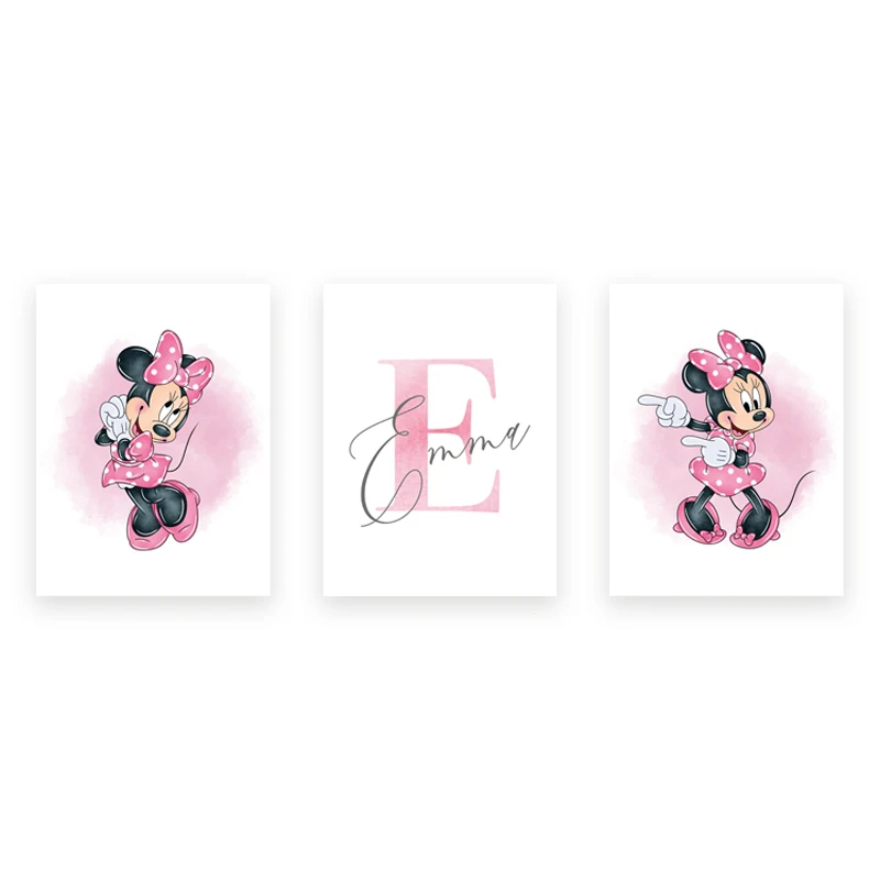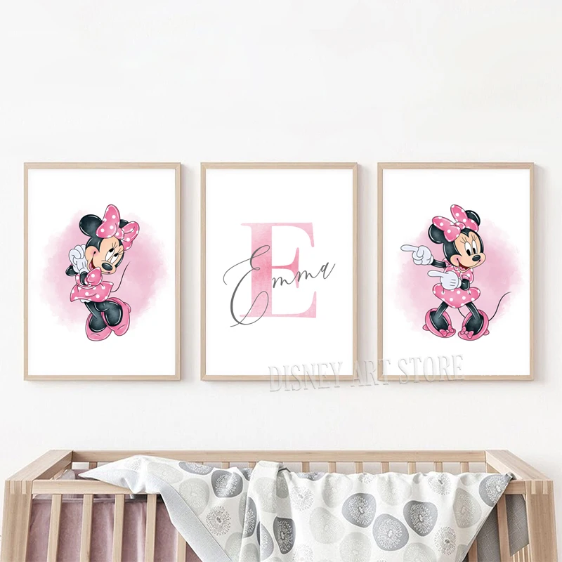 لوحة جدارية مطبوعة باسم شخصي، لوحة ميني ماوس مائية مخصصة، ملصق قماشي، ديكور جداري لغرفة الفتيات، ميني ماوس