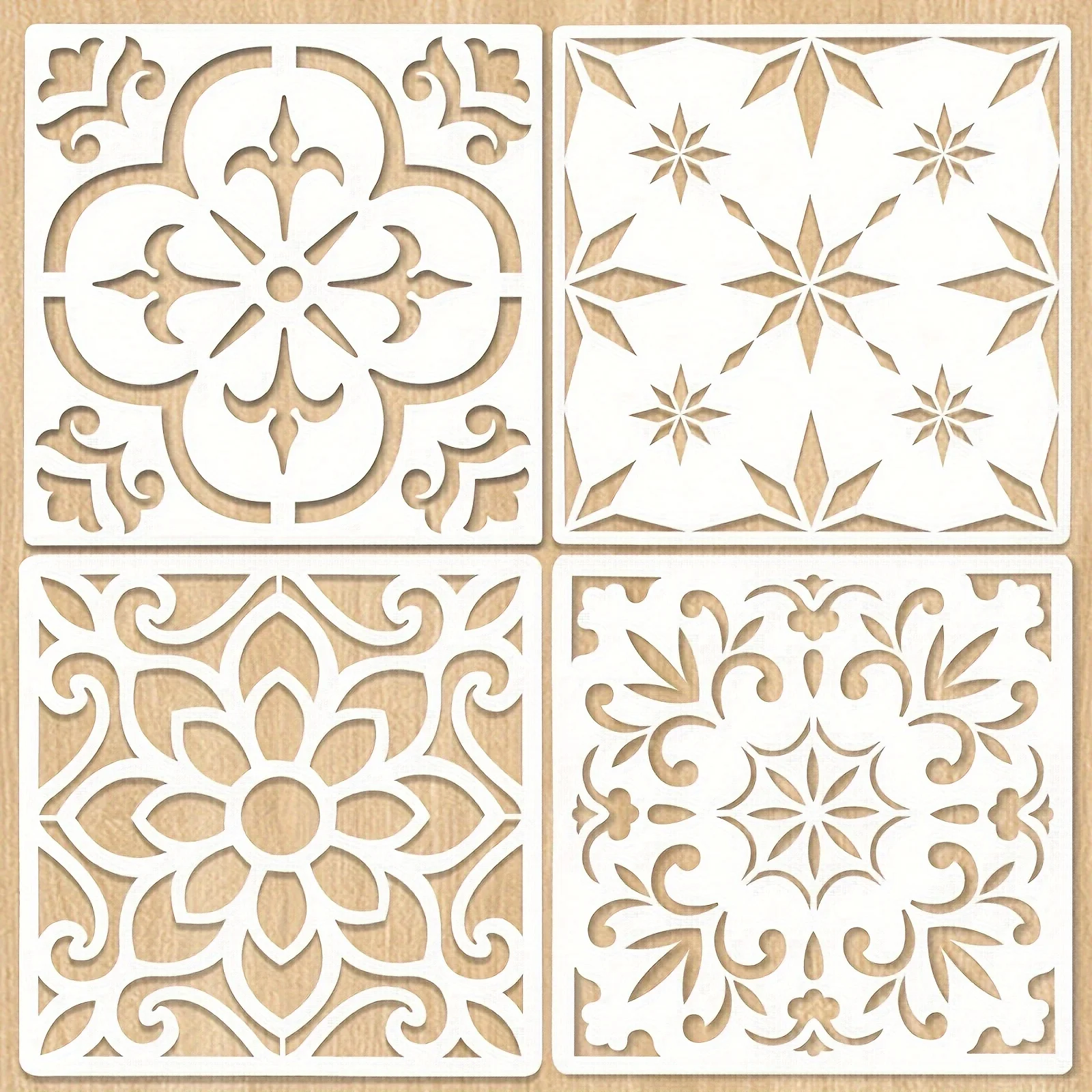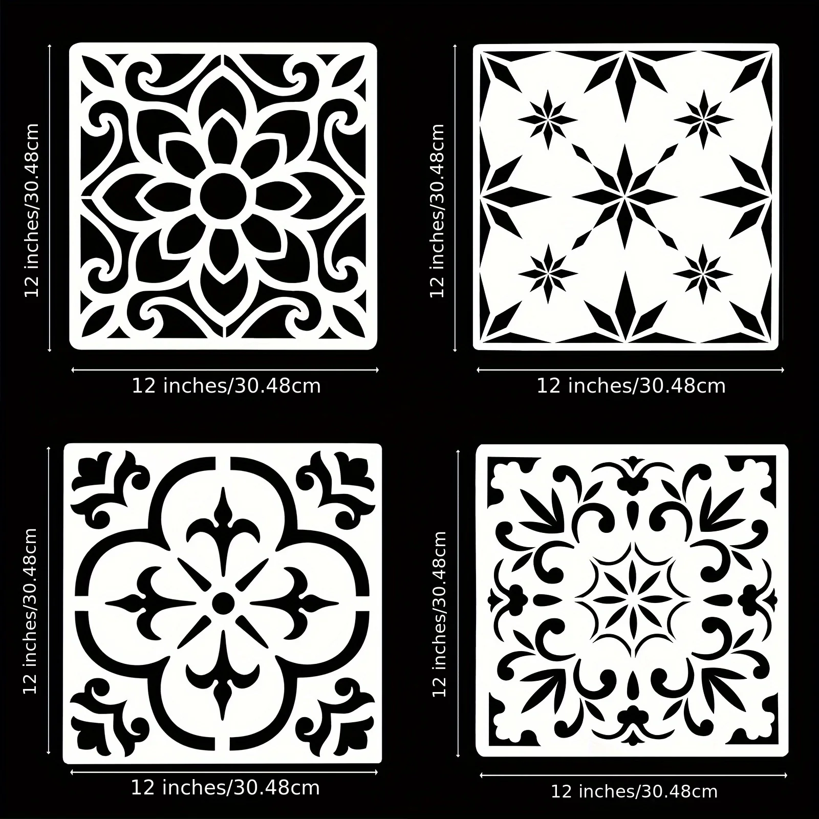 مجموعة قوالب قابلة لإعادة الاستخدام بنمط ماندالا مكسيكي، 4 قطع، مقاس 12 × 12 بوصة، لتزيين الأرضيات والجدران والأثاث