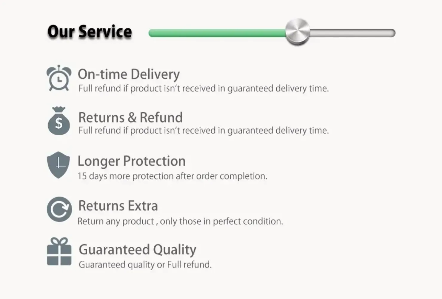 1. يمكننا دعم خدمة الشحن المباشر وإرسال المنتجات إلى عملائك بدون أي إيصالات أو فواتير أو عروض ترويجية داخل الطرد؛