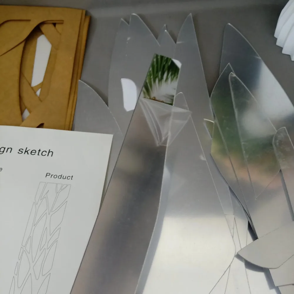 1. سطح مرآة أكريليك صديق للبيئة، بسماكة 1 مم، محمي جيدًا بغشاء شفاف.