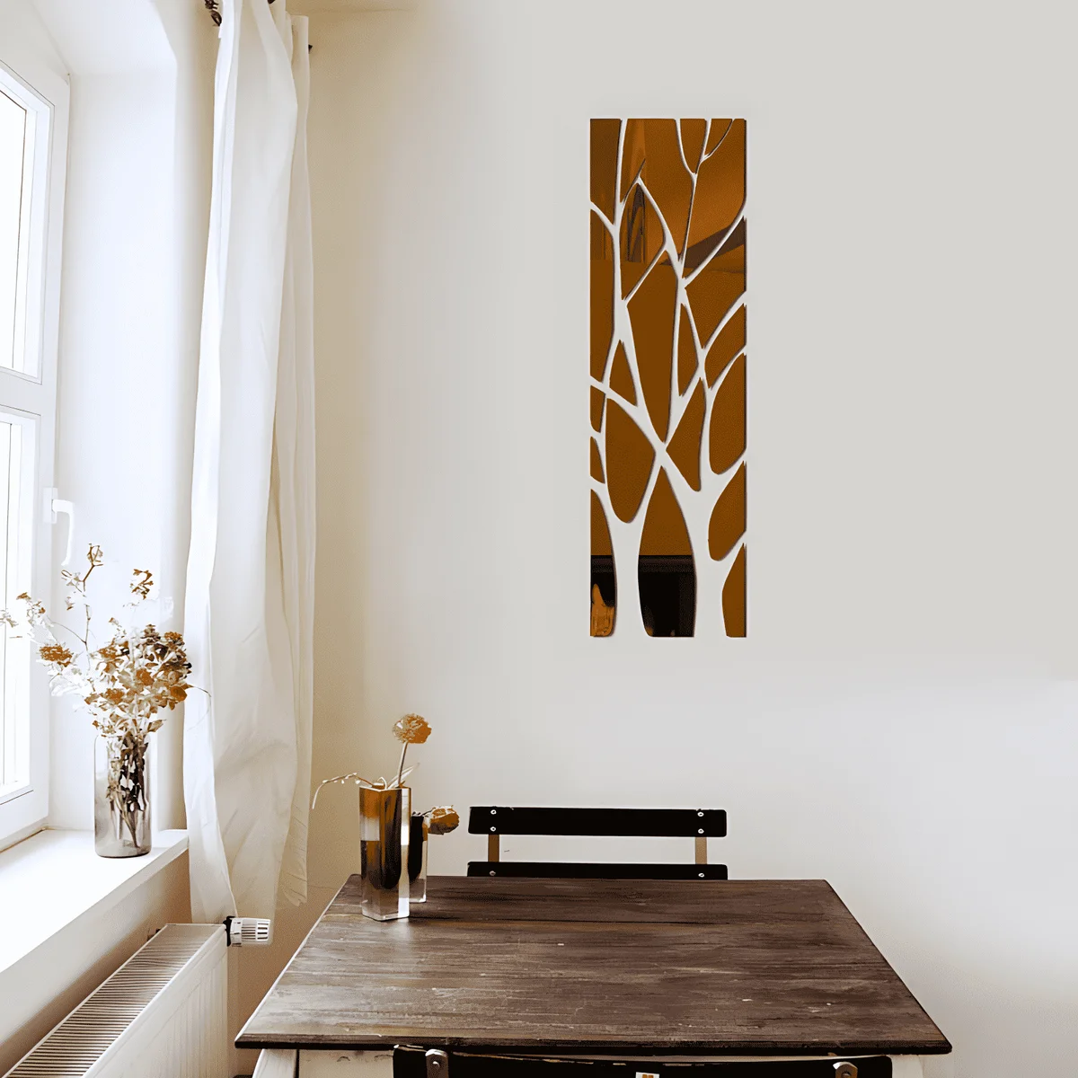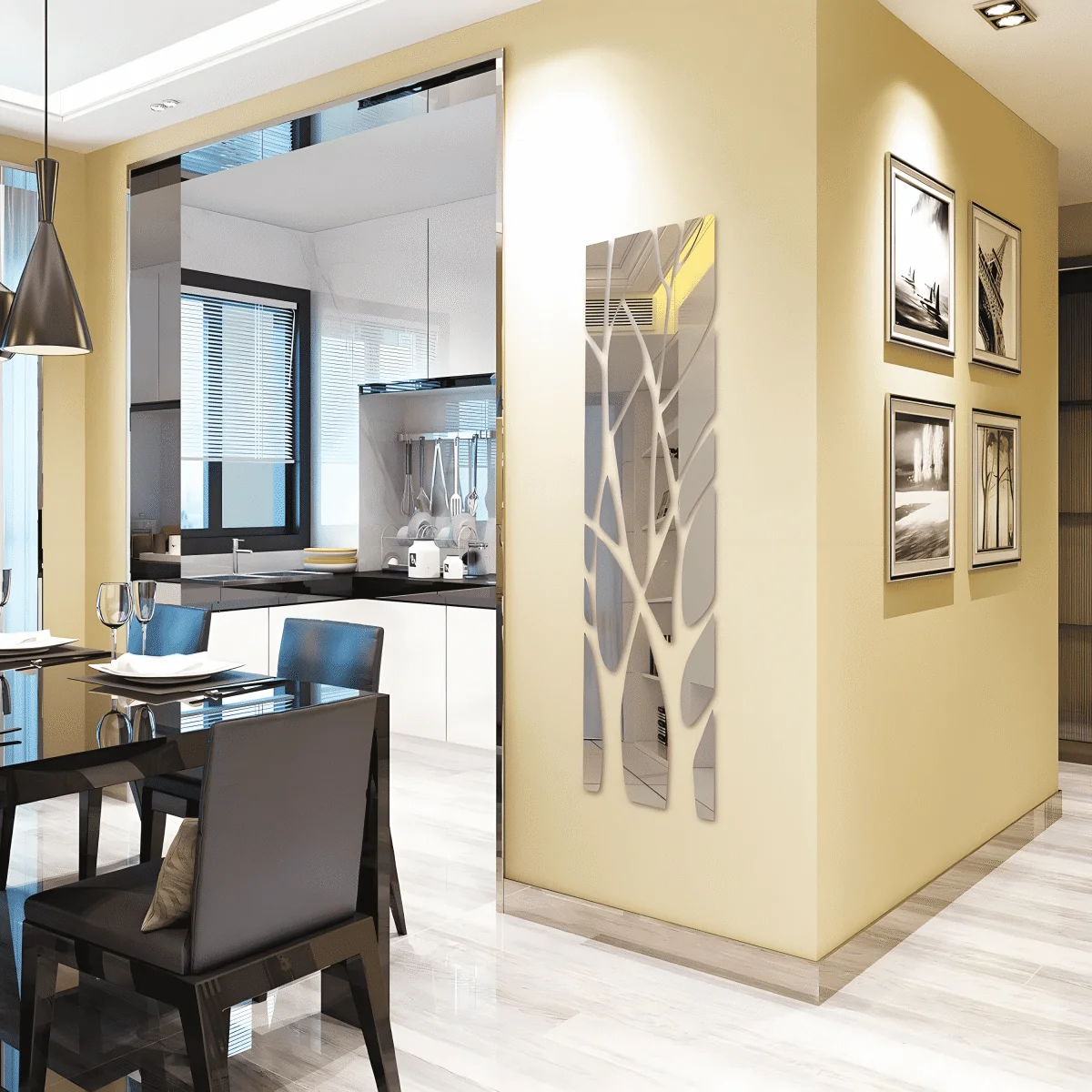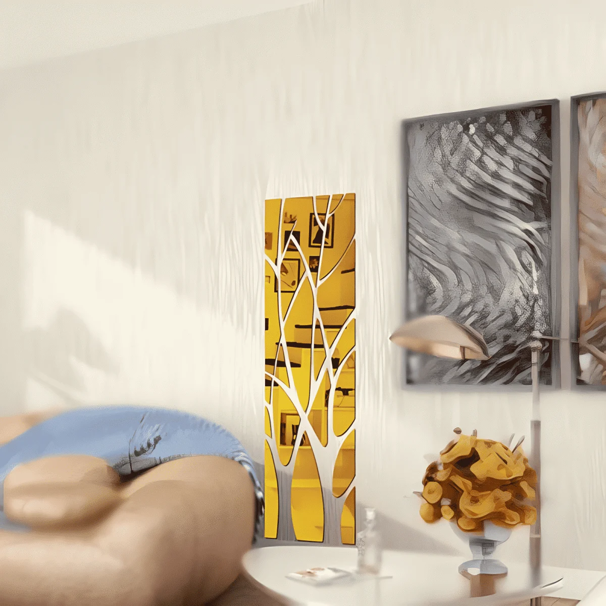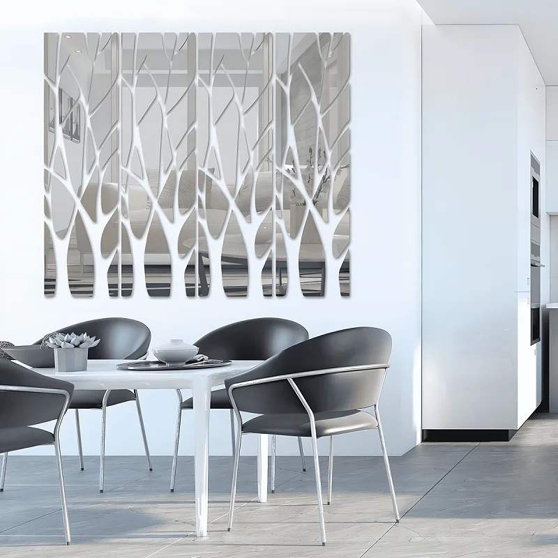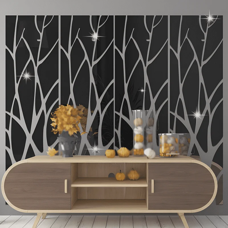 1. ملصق الحائط العاكس يُعطي وهمًا بمساحة أكبر، والانعكاس المشوه قليلًا يُتيح إطلالات طريفة للتسلية.