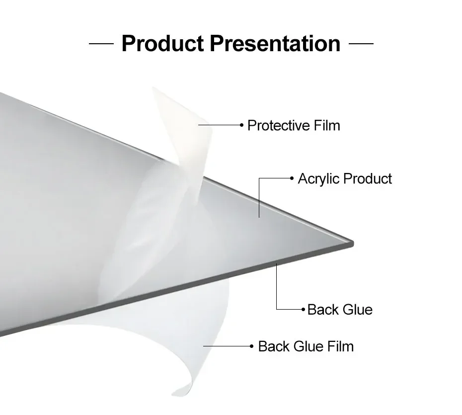 2. سطح المرآة الأكريليكي الصديق للبيئة مُحسّن بشكل جيد بسماكة 1 مم ومحمي جيدًا بغشاء شفاف.