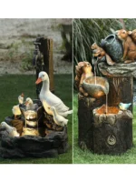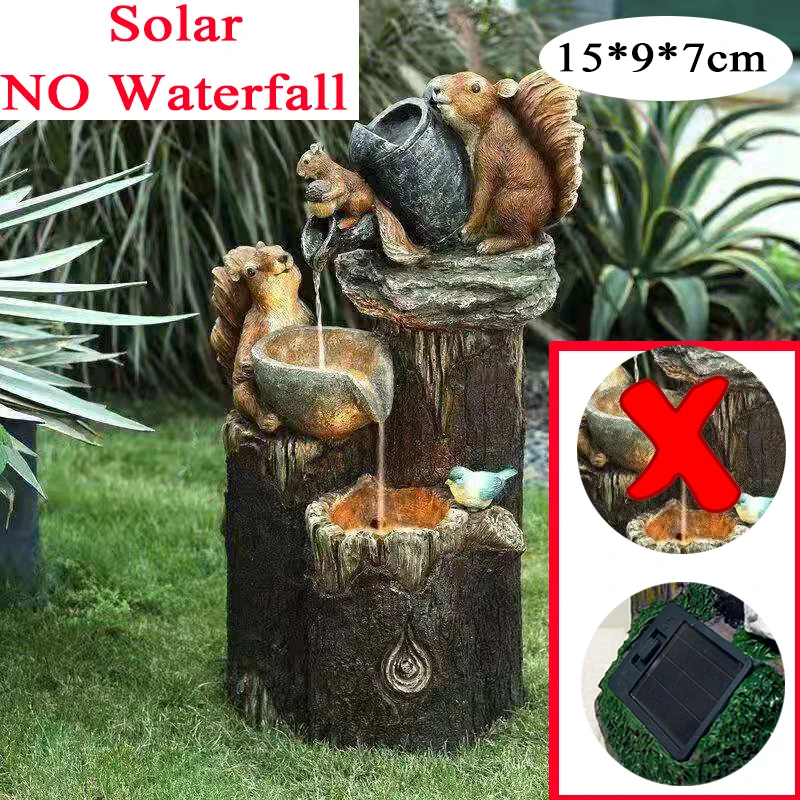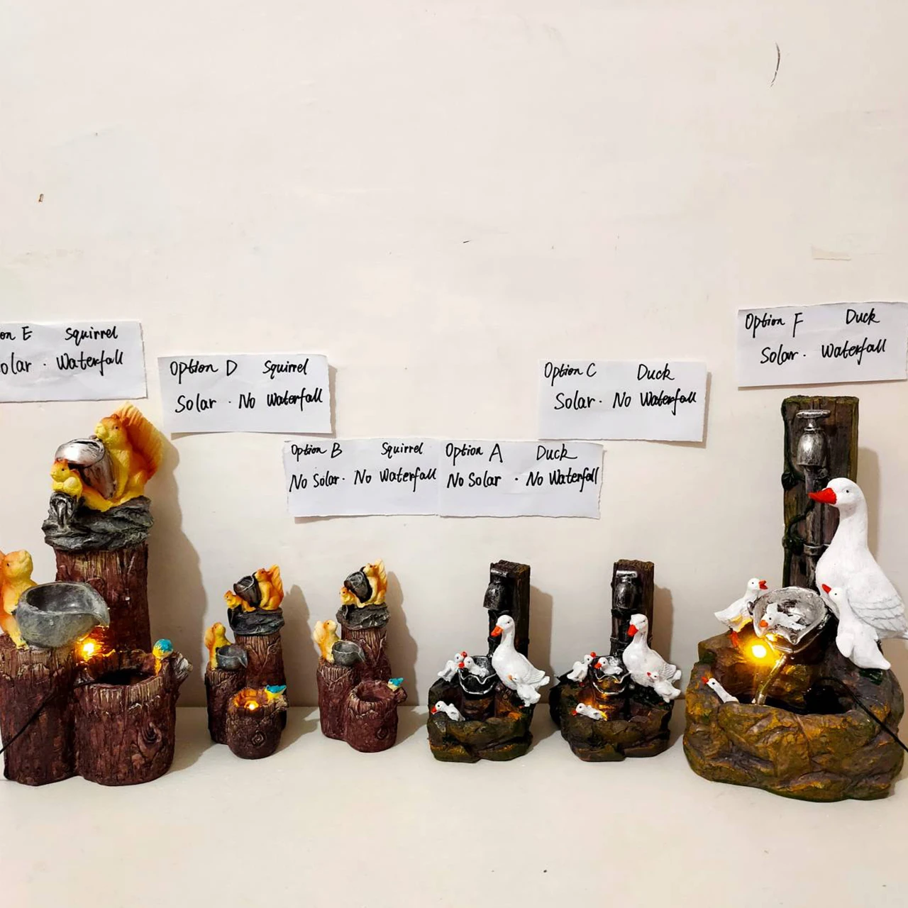 نافورة فناء تعمل بالطاقة الشمسية على شكل بطة وسنجاب، مصنوعة من الراتنج، مع إضاءة LED، ديكور خارجي يحاكي الطبيعة