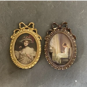 إطار صور بيضاوي عتيق معلق على الحائط، مزين بفيونكة ذهبية بارزة، مصنوع من الراتنج، حامل إطار صور، ديكور طاولة، ديكور منزلي، ورق عشوائي