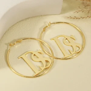 أقراط حروف مخصصة، أقراط حلقية تحمل اسمًا شخصيًا، أقراط مصنوعة يدويًا من الفولاذ المقاوم للصدأ، هدية للنساء